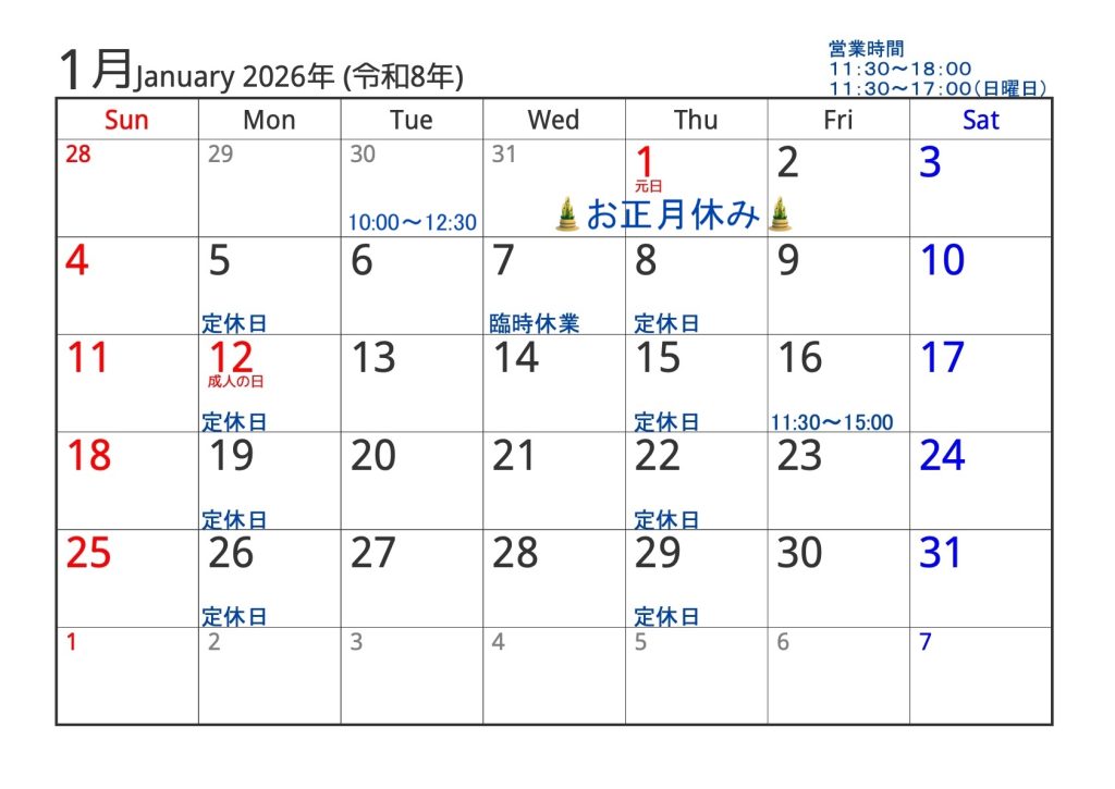 うずまき堂の年末年始の営業スケジュールは以下の通りです。